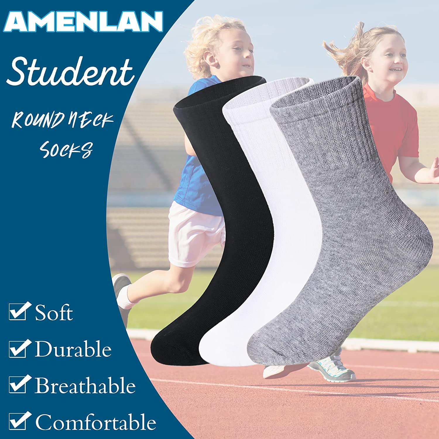 AMENLAN Children's Classic Crew Socks 10 Pairs Kids Boys Girls Sports Cotton Basic School Uniform Breathable Casual Sports Socks