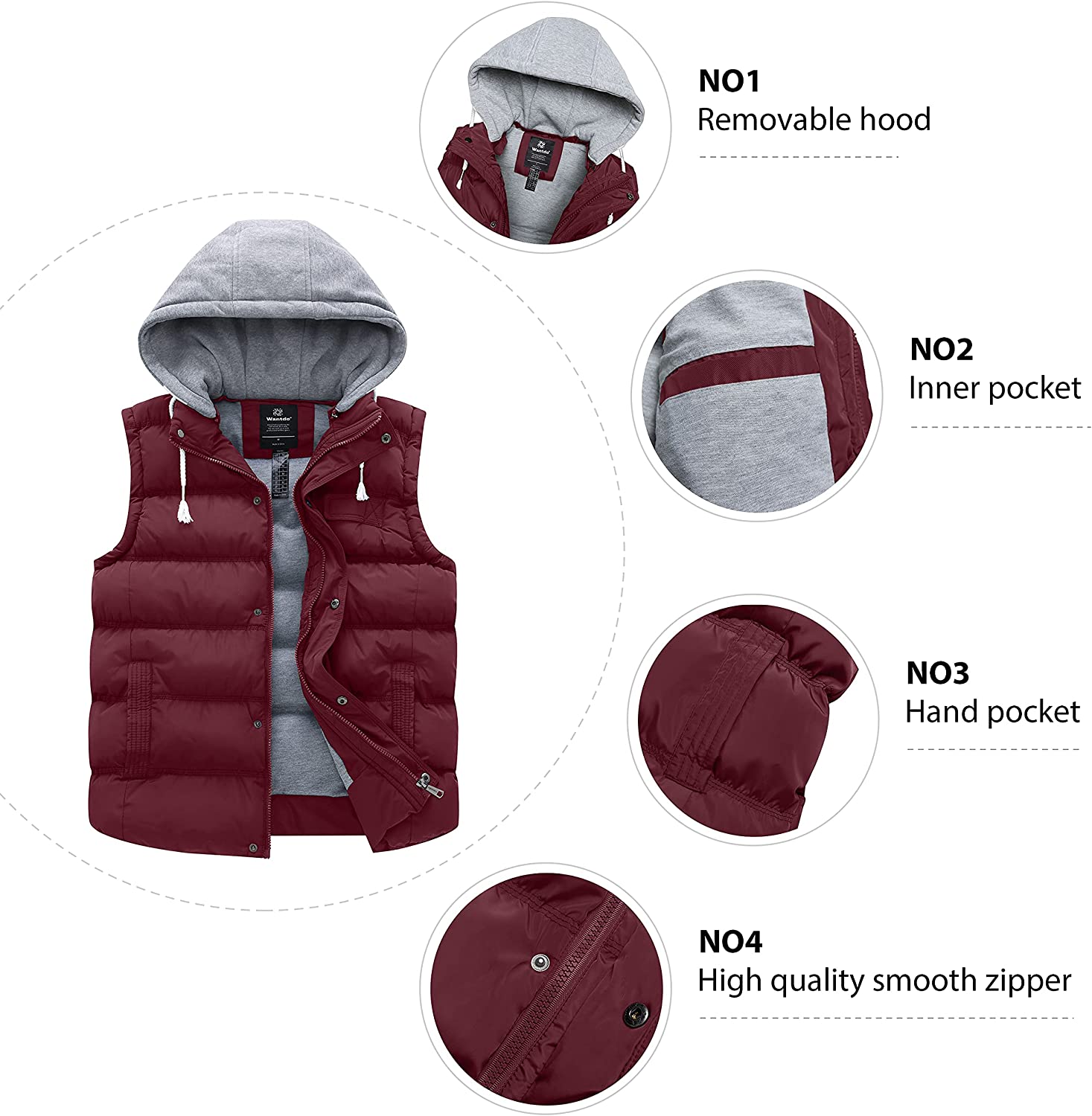 Wantdo Women's Quilted Down Vest Thickened Warm Winter Jacket With Detachable Hood