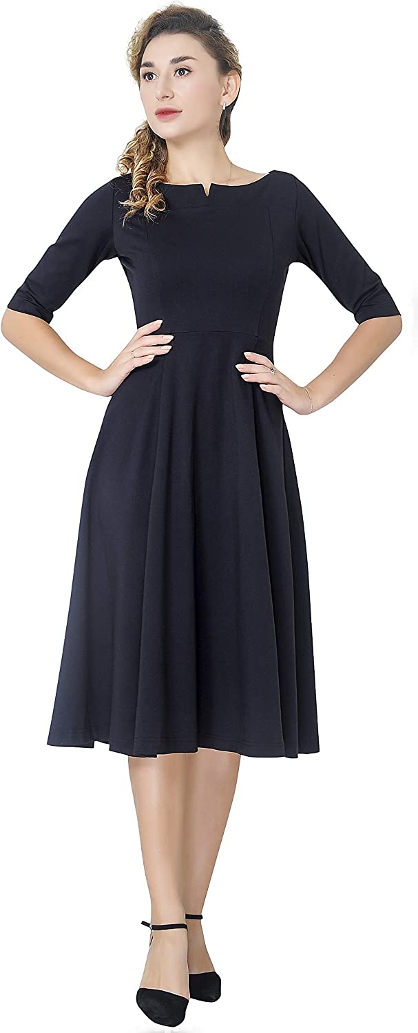 Marycrafts Women's Slim Fit and Flare Tea Midi Dress for Office Business Work